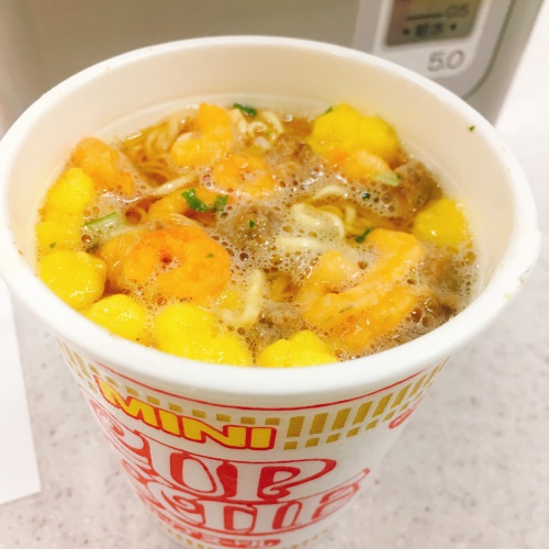 途中のセブンでカップヌードルをすすりつつ